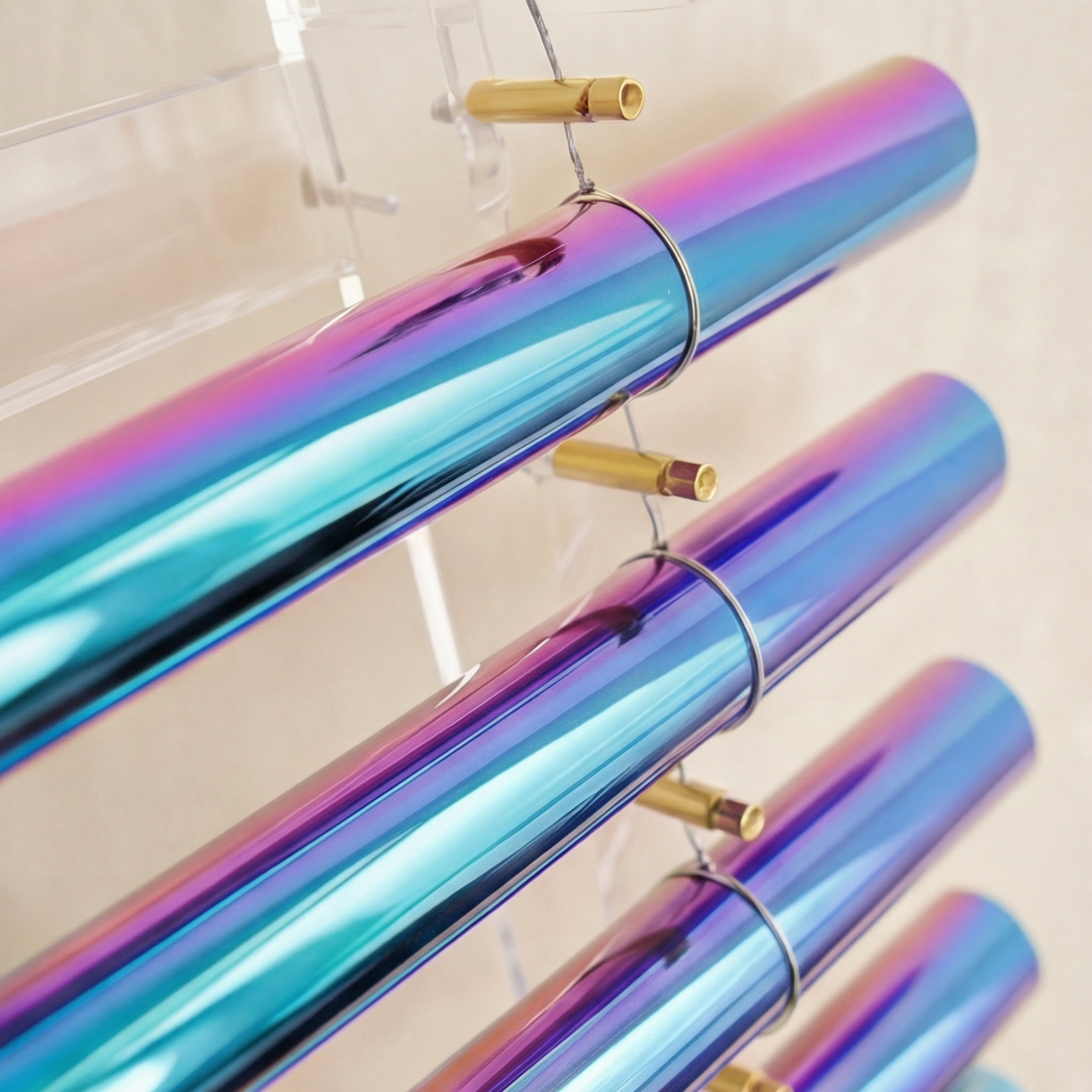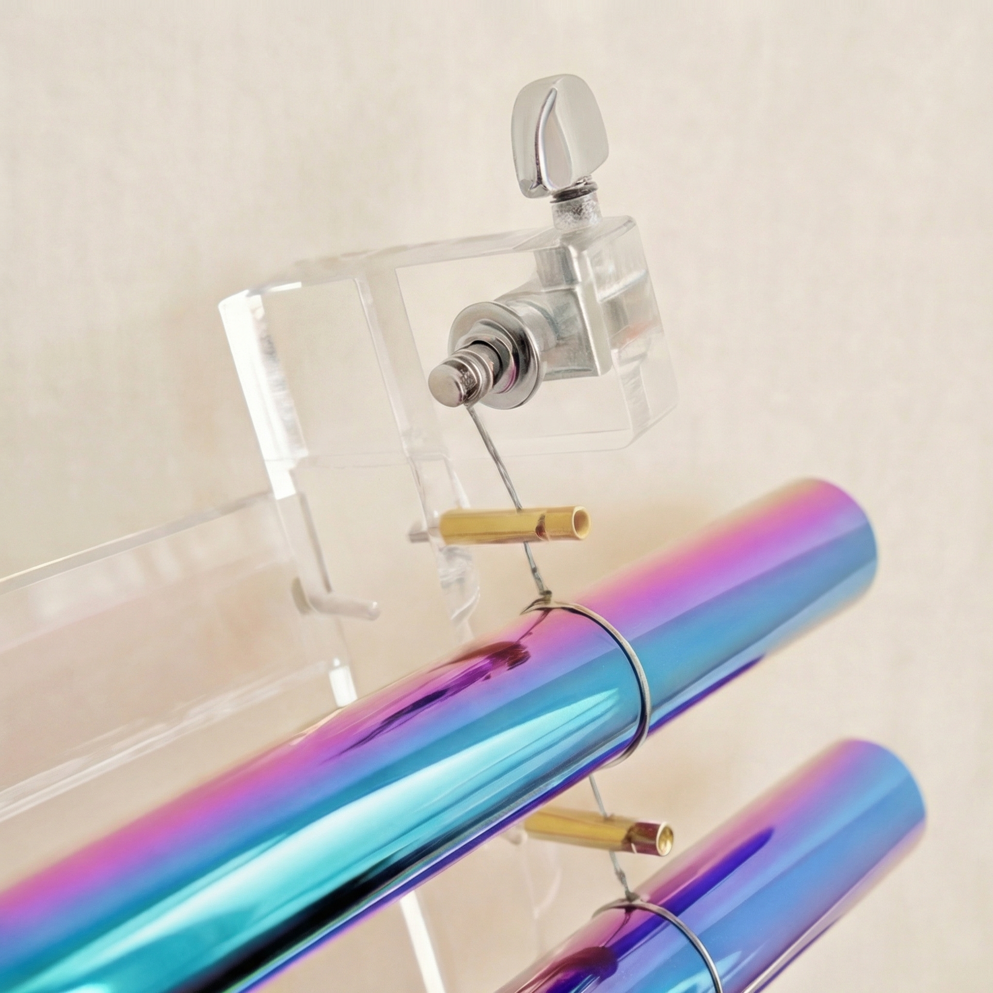 Crafted from 99.99% pure quartz crystal, each tube is tuned to a specific musical note aligned with the C major scale and the seven chakras.