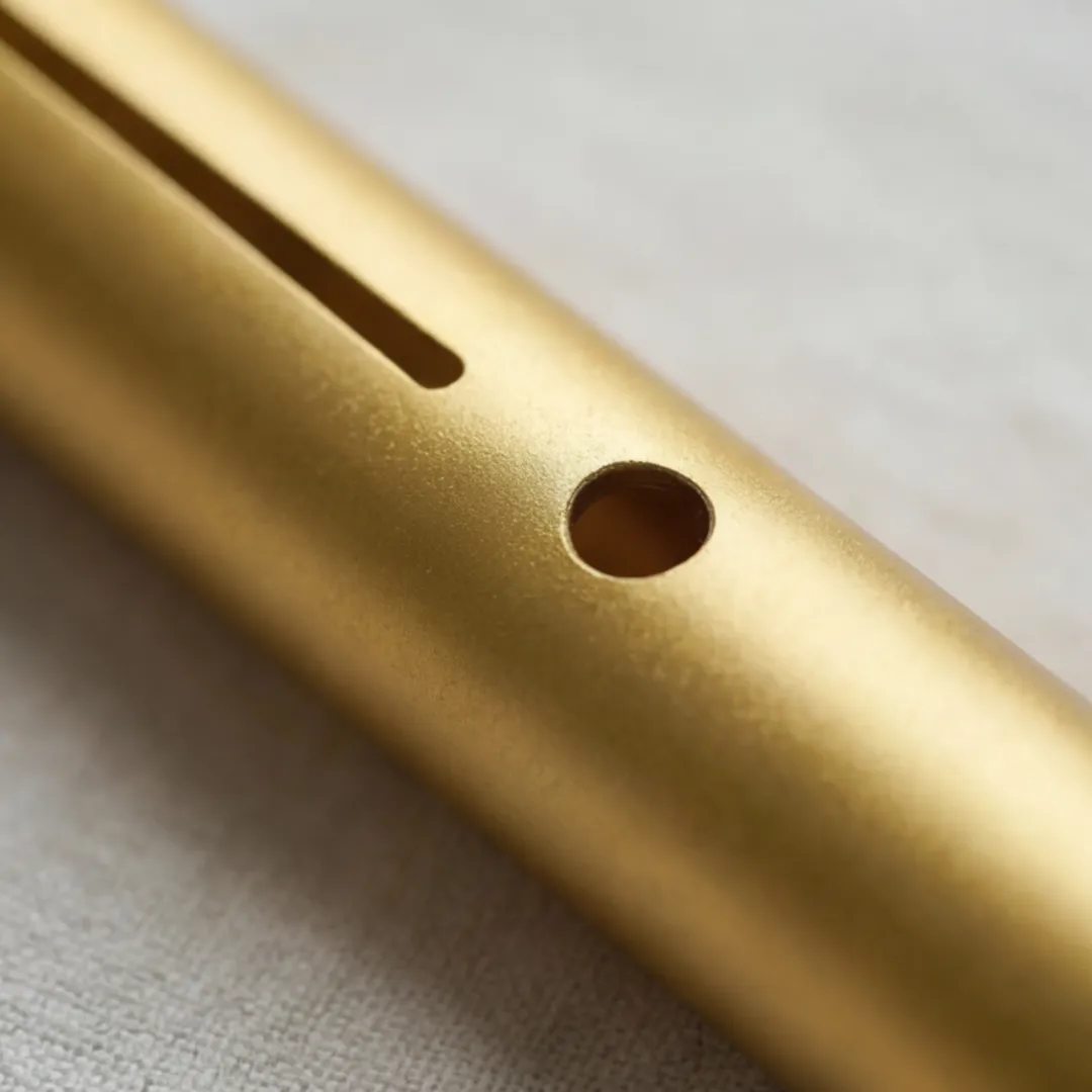 Made from frosted aluminum, it’s easy to grip and nearly indestructible. Available in three notes: D (blue, 28cm), E (gold, 26cm), or F (black, 25cm).
