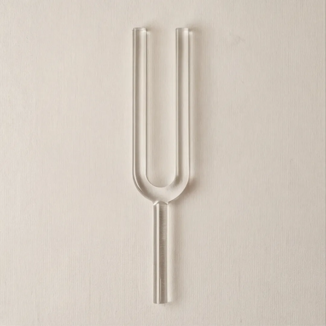 This unique 16mm crystal tuning fork is carved from clear quartz — a mineral widely appreciated in sound therapy for its resonant clarity and symbolic amplification properties. Unlike metal tuning forks, this piece produces a soft, bell-like tone when tapped or gently struck, ideal for use in meditative settings or energy-based rituals.